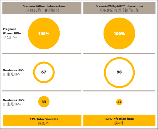 全球三千三百万HIV感染者中,二百一十万是儿童。如果感染的孕妇不经抗病毒药物干预,病毒就会在怀孕、分娩和哺乳时传染给孩子,比率是33%,令人担忧。