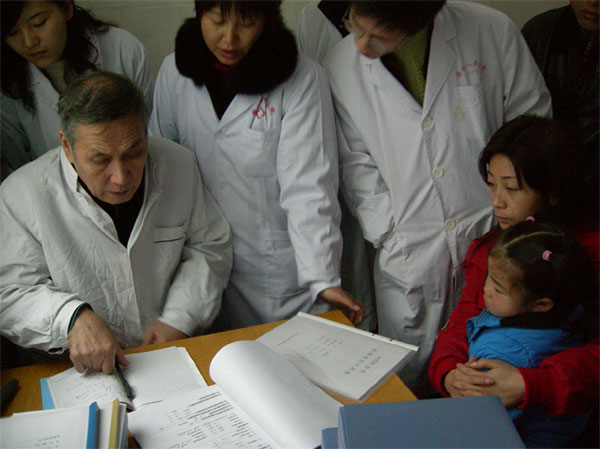 Dr. Gui Xi’en, Director of the Central China pMTCT Program, reviewing patient charts with junior colleagues.